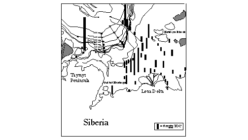 Fig. 1: Fatty acid distribution in the surface sediments of the Laptev Sea.